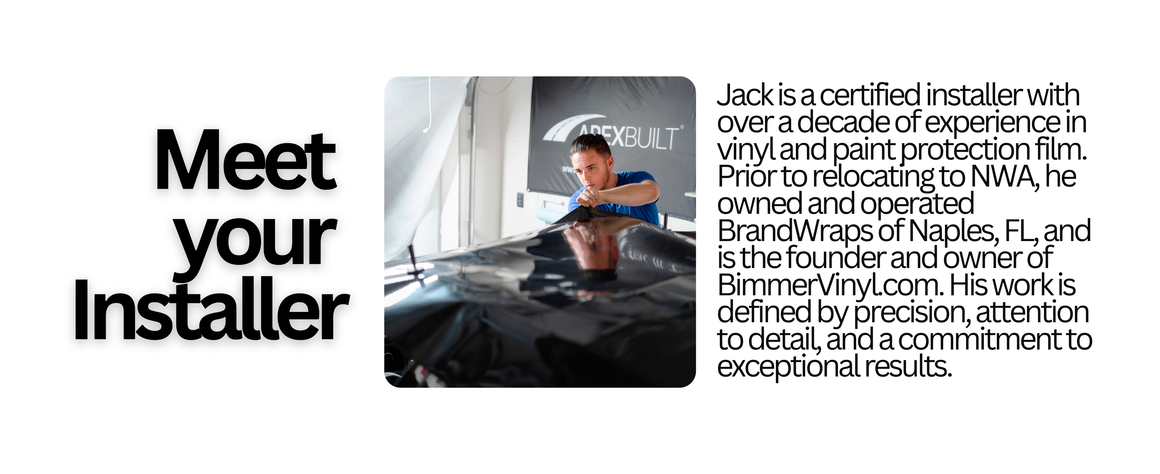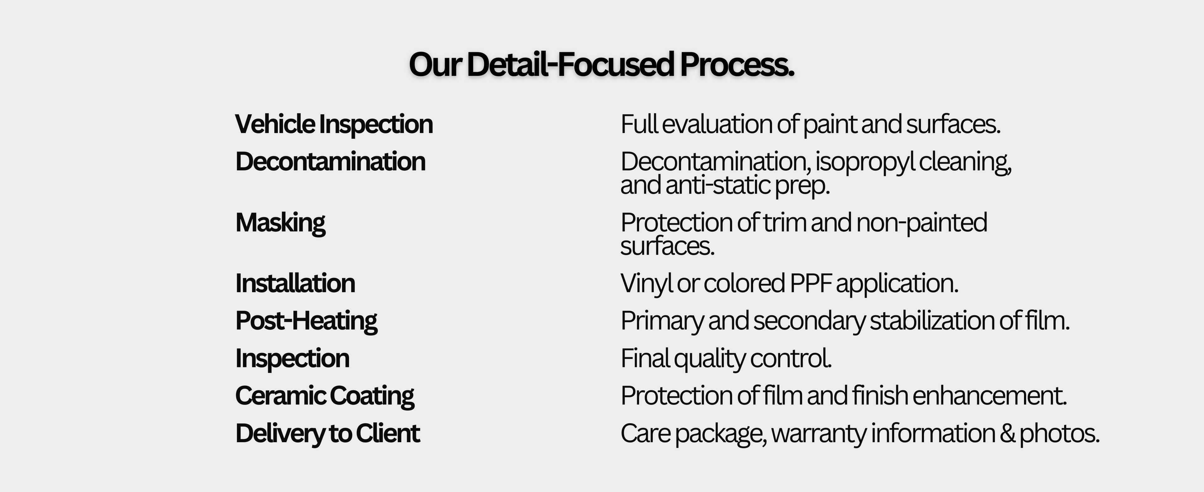 Projects begin with a consultation to evaluate the vehicle and discuss goals, film options, and overall direction.